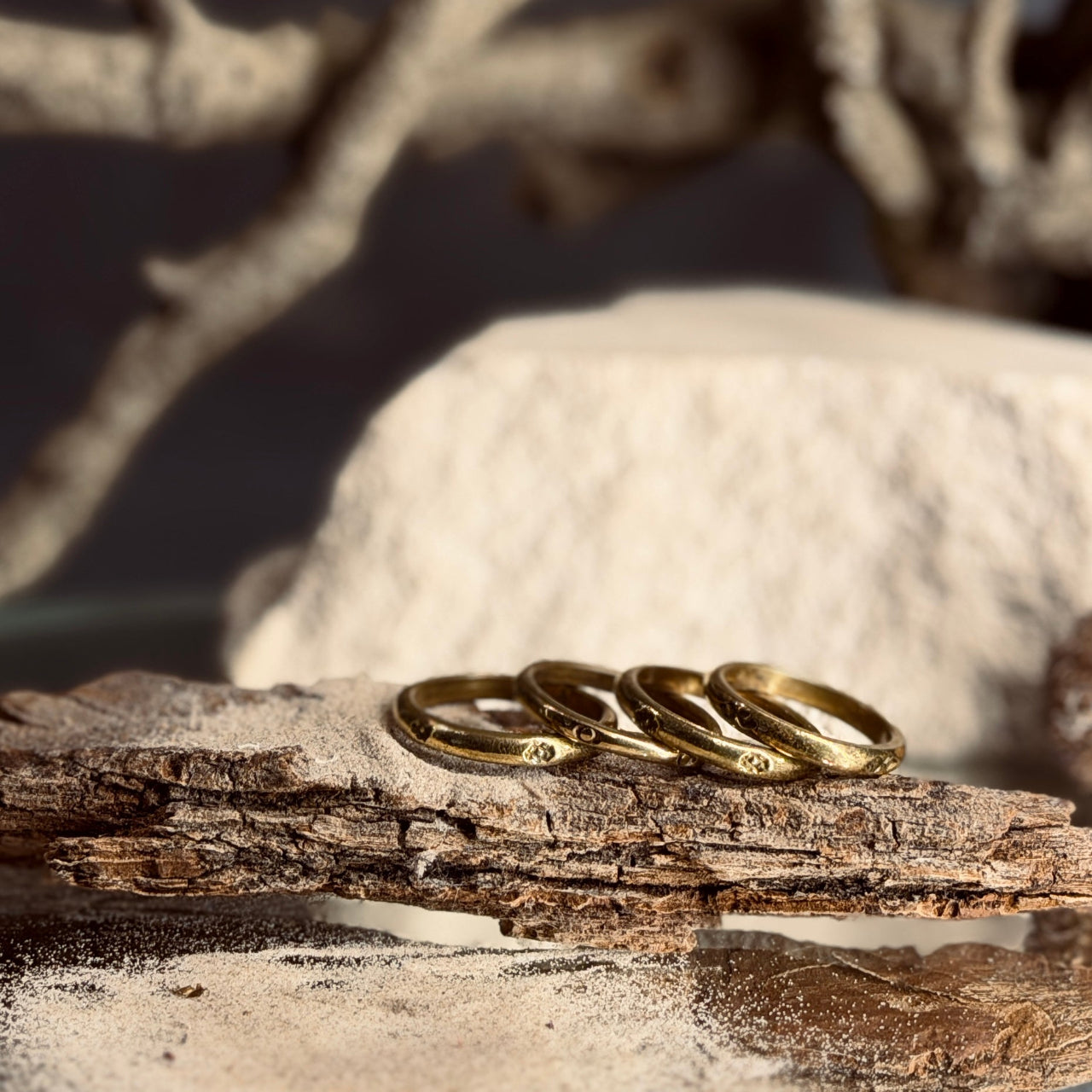 Metāla sulti saulainā tonalitāte ar laiku iegūst vēl dziļāku nokrāsu, padarot katru misiņa gredzenu unikālu - gluži kā tā valkātāju. Šis misiņa gredzens ir piemērots ikdienai - nemanāms, bet ar savu klātbūtni. Piemērots gan vienatnē valkāšanai, gan kombinēšanai ar citiem gredzeniem.