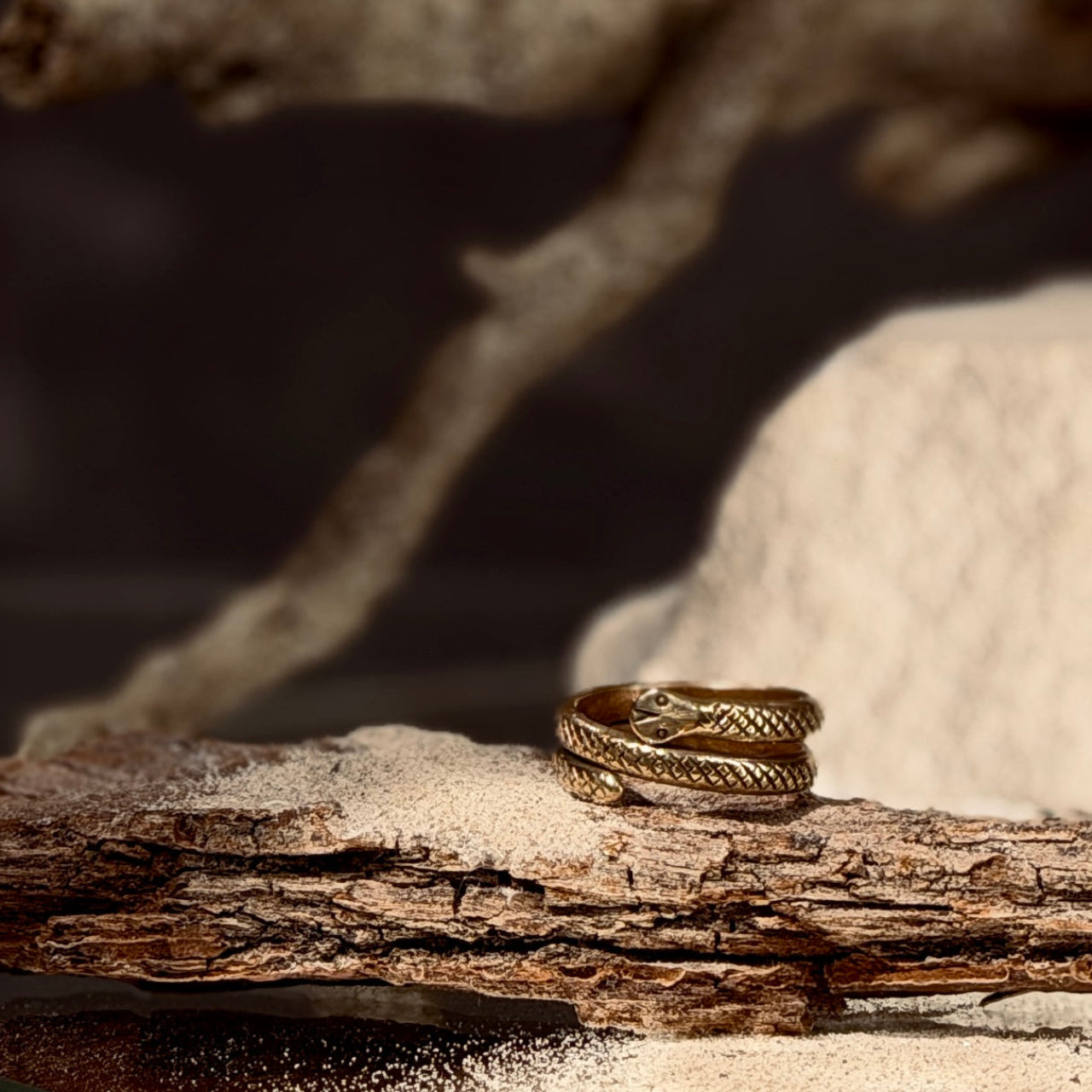 Misiņa gredzens veidots spirālveidā, atgādinot zalkša vijumu. Teksturētā virsma un izteiksmīgā galvas forma piešķir rotai raksturu un spēku. Misiņa gredzens Zalktis organiski aptver pirkstu - kā simboliska aizsargjosla.