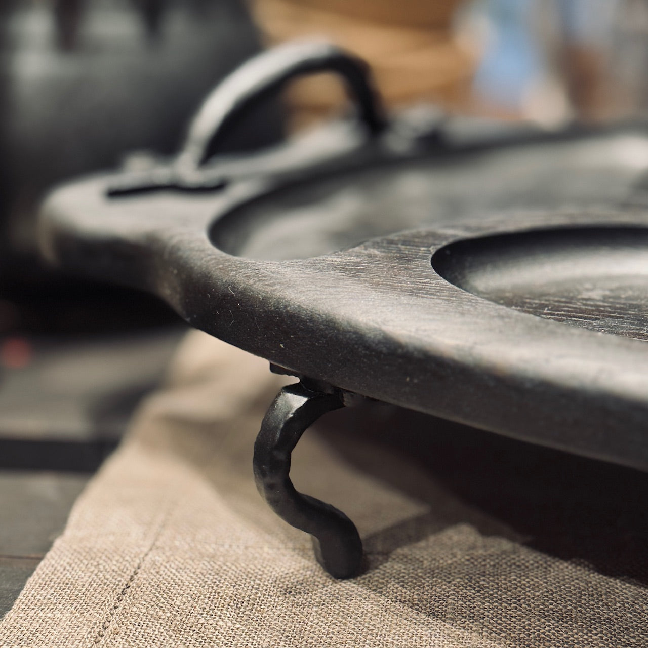 - Kalti metāla rokturi - piešķir paplātei spēku un autentisku raksturu.