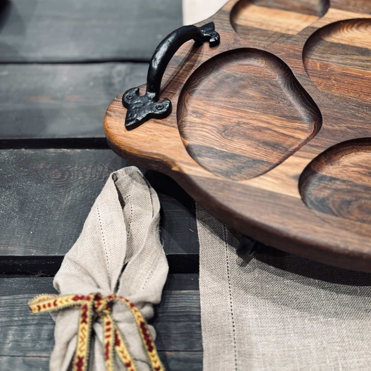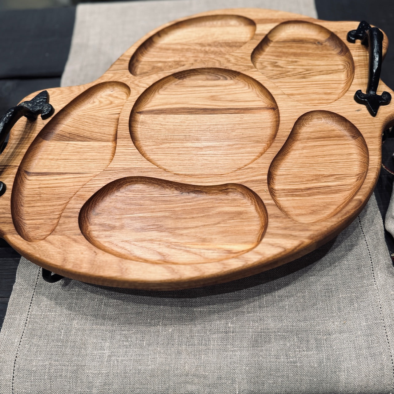 Paplātes organiski veidotie nodalījumi ļauj ērtāk pasniegt uzkodas, sierus, ogas, riekstus vai citus cienastus, savukārt ozolkoka paplātes masīvais ozola koks nodrošina ilgmūžību un kvalitāti, kas saglabājas gadiem.