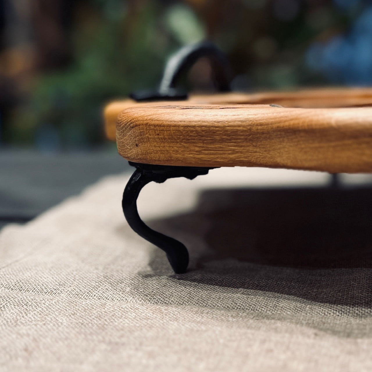 - Kalti metāla rokturi - piešķir paplātei spēku un autentisku raksturu.