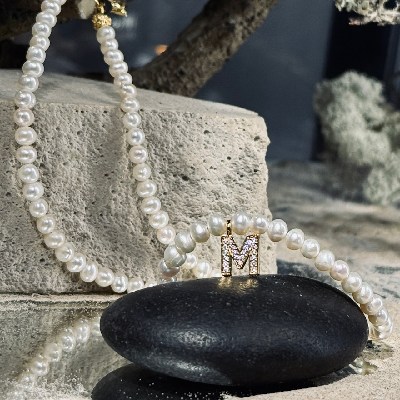 Pērļu kaklarotas ar APZELTĪTU INICIĀLI