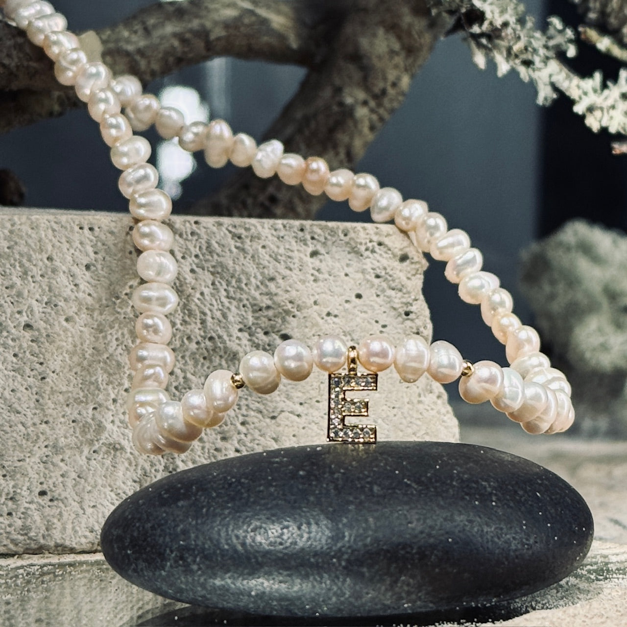 Pērļu kaklarotas ar APZELTĪTU INICIĀLI