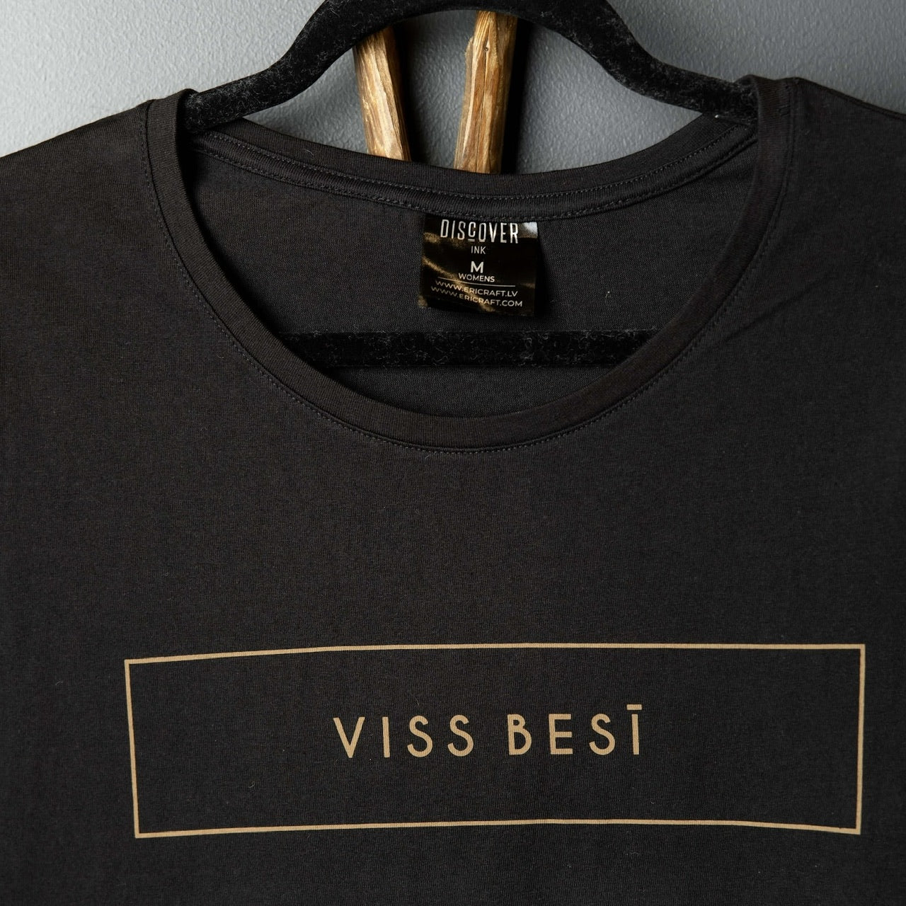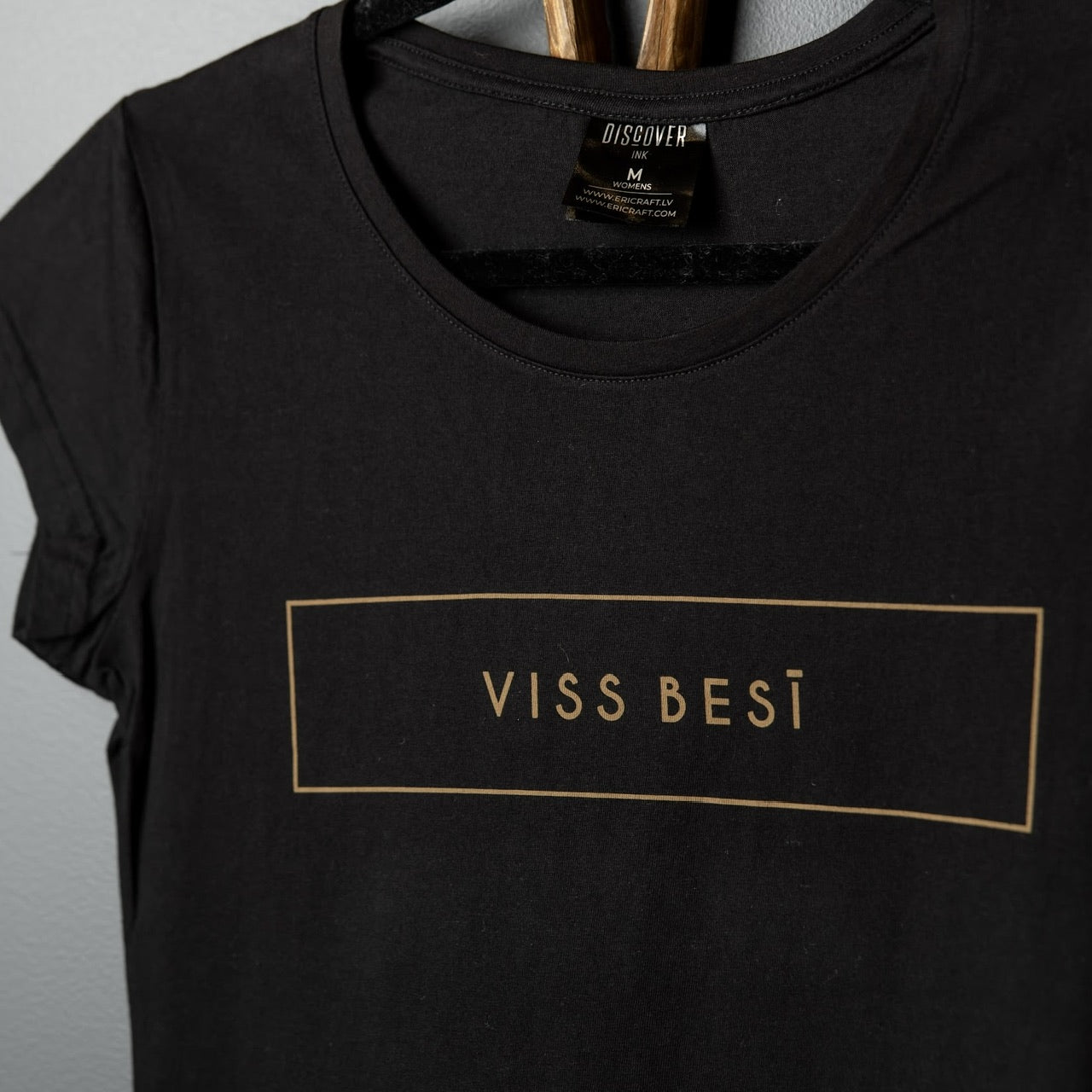 Kokvilna (maiga un elastīga), dizains drukāts pašu rokām, izmantojot ūdens bāzes sietspiedes krāsu. Šis savukārt nozīmē to, ka dizains nebalēs apģērbu mazgājot.