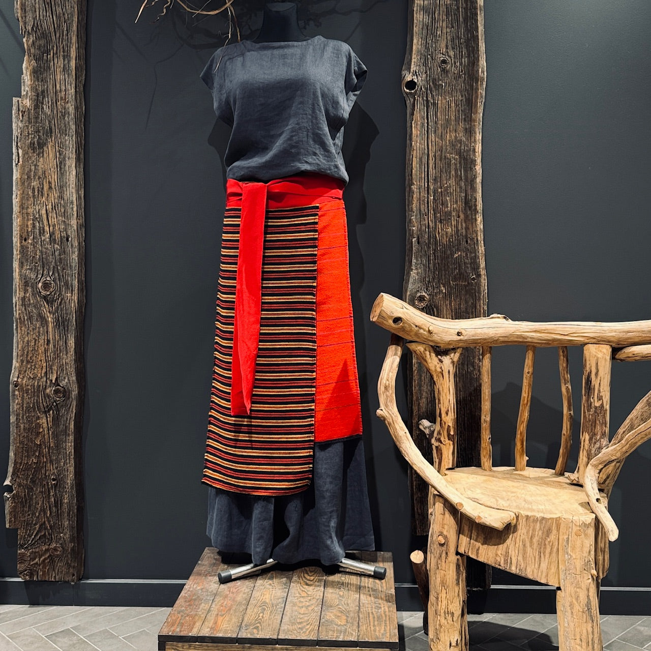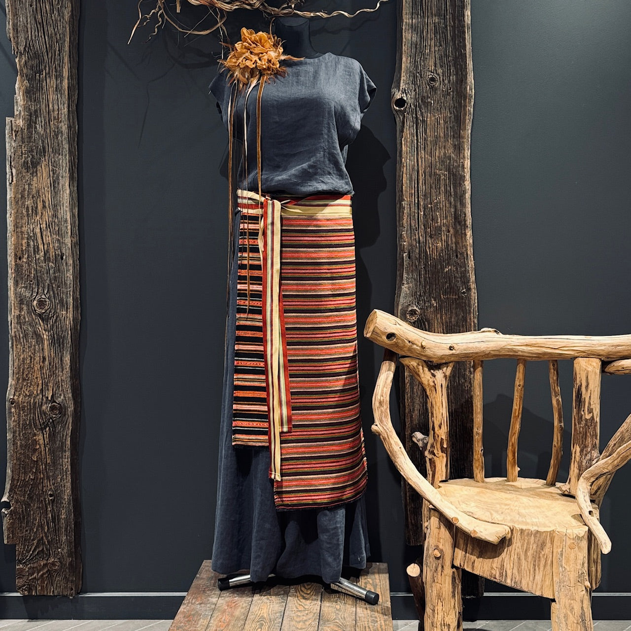 Pusbruncis ir mūsdienīga interpretācija par klasiskajiem tautiskajiem brunčiem - radīts no 2 autentiskiem brunču audumiem, kas apvieno tradīciju un ērtumu. Tas tiek apsiets ap vidukli, garā dekoratīvā josta piešķir tērpam izteiksmīgu akcentu.