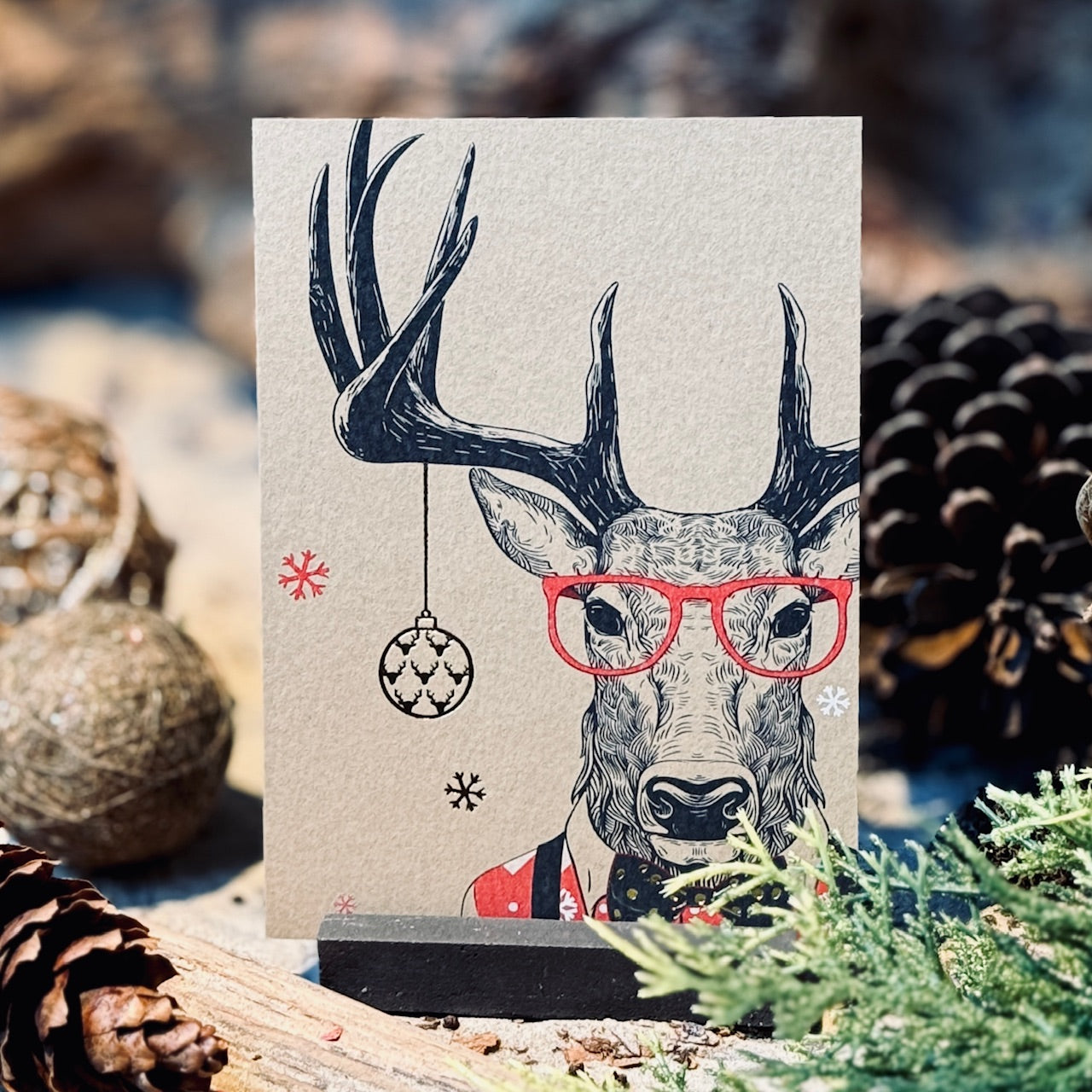 Kad svētki tuvojas , arī meža valdnieks - briedis - ieņem savu stillu! Brilles, džemperis, tauriņš un labs noskaņojums - viss, kas vajadzīgs, lai Ziemassvētki būtu modīgi un sirsnīgi.